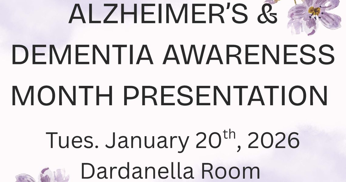 Alzheimer’s & Dementia Awareness Month Presentation will be held at Waterside Retirement Home on Tuesday, January 20th, 2026, at 10:30 am in the Dardanella Room.